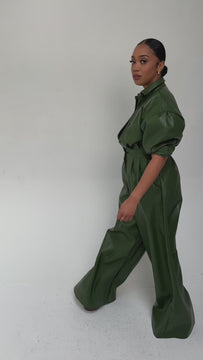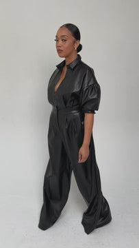 This limited edition jumpsuit is an homage to Onika in the fall/winter season. She is made of vegan leather, is cut in the same silhouette of our Onika jumpsuit, and will be a staple in your closet this season.